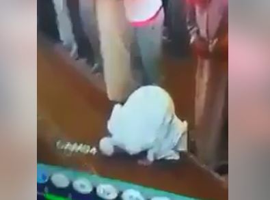 ويظهر الفيديو، رجلا مسنا بجلباب أبيض يركع بشكل مفاجئ خلال تأديته للصلاة أثناء وقوف المصلين، وظل راكعا حتى أتم المصلون الصلاة تماما وخرجوا منها.