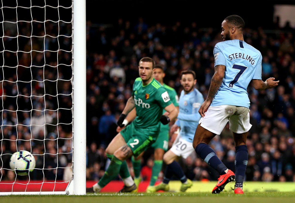 وعاد السيتي للكرة وأحرز الهدف الثانٍي عبر سترلينج من تمريرة عرضية أرضية، ليعود النجم الإنجليزي ويسجل "الهاتريك" وبعد مراوغة مدافعي واتفورد في منطقة الجزاء، وأصبح رصيده 15 هدفا هذا الموسم أي على بعد 3 أهداف ليعادل صاحب المركز الأول أجويرو صاحب الـ 18 هدفا.