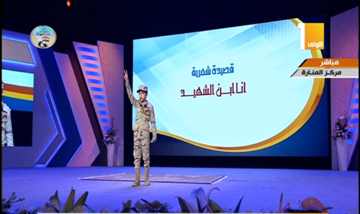 عرض الطفل أدم أشرف، قصيدة شعرية بعنوان:" أنا ابن الشهيد" خلال فعاليات الندوة التثقيفية الثلاثين للقوات المسلحة بمناسبة يوم الشهيد ، اليوم الأحد.
