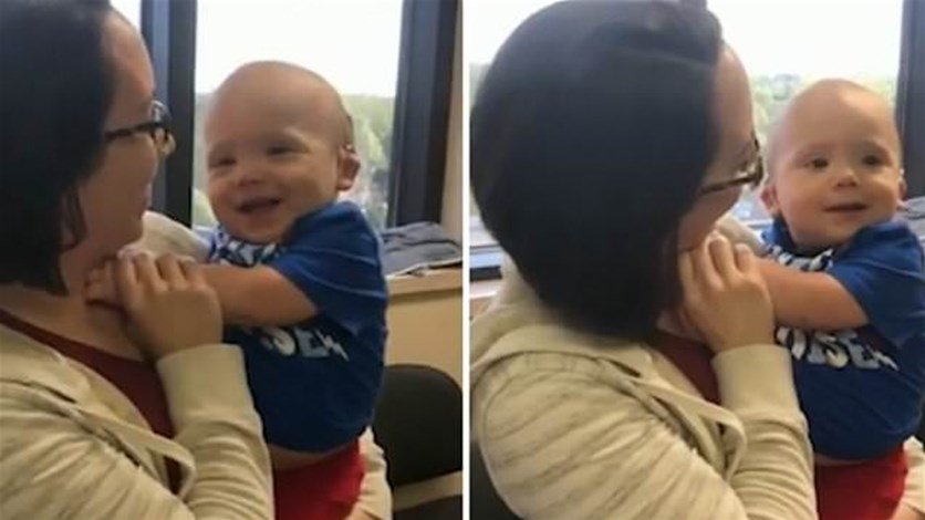 نشرت صحيفة "ديلي ميل" البريطانية، مقطع فيديو، تداوله رواد مواقع التواصل الاجتماعي، يُظهر لحظة سماع طفل، يبلغ من العمر سنة واحدة، لصوت والدته لأول مرة.