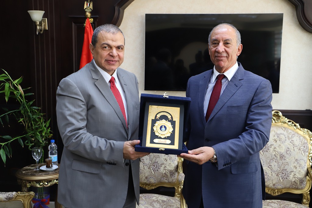 كما سلم محمد جبران، رئيس النقابة العامة للعاملين بالبترول، درع النقابة للمحافظ أحمد عبد الله.