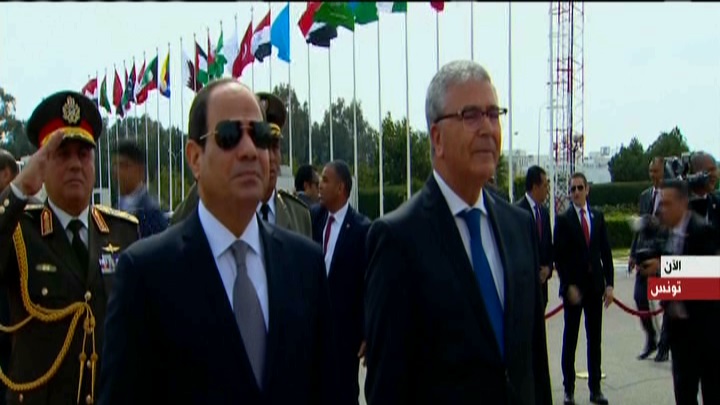 عرضت فضائية "الأولى"، صباح اليوم، الأحد، لقطات مراسم استقبال الرئيس عبد الفتاح السيسي بعد وصوله إلى تونس للمشاركة فى أعمال القمة الـ 30.