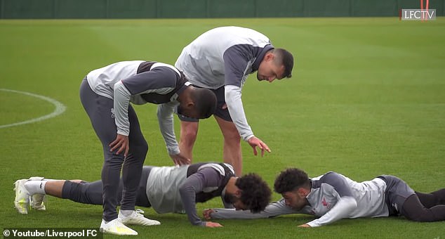 خسر المصري محمد صلاح جناح نادي ليفربول، تحدي تسديد الكرة في العارضة، مع زملائه في الفريق، الكرواتي ديجان لوفرين والإنجليزي أوكسليد تشامبرلين و الهولندي فينالدوم عقب تدريبات اليوم في ميلوود.