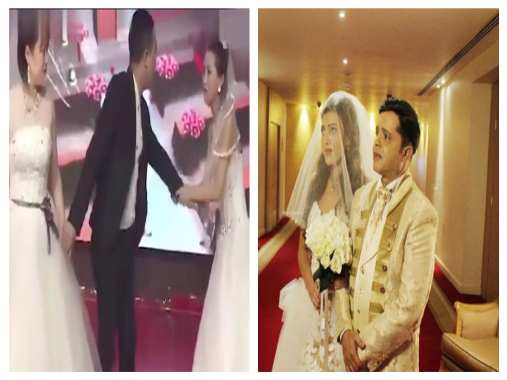 حاول العريس إبعاد حبيبته السابقة عن عروسه، والهروب منها قدر الإمكان، لدرجة أن الفتاة ركعت أمام قدميه تتوسل إليه ألا يتركها، وقالت له: "إنها غلطتي".