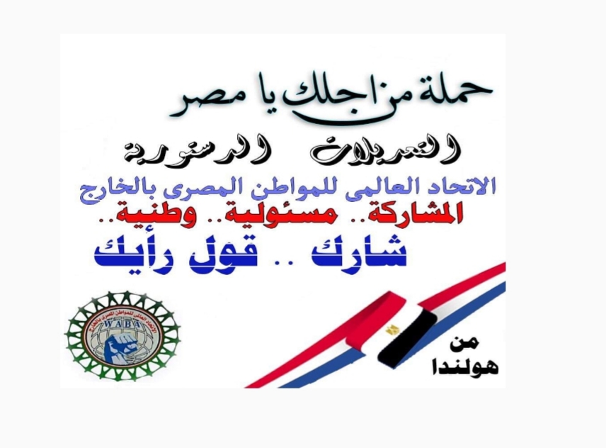 أطلق ممثلو الاتحاد العالمي للمواطن المصري في الخارج بالمملكة الهولندية حملة من أجلك يا مصر وذلك دعما للتعديلات الدستورية المزمع الاستفتاء عليها في شهر إبريل الجاري.