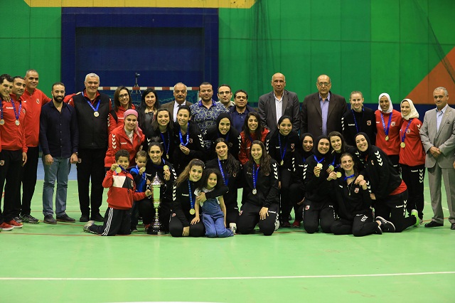 شهد مراسم تتويج الأهلي بلقب دوري سيدات الكرة الطائرة، طارق قنديل، ومحمد الدماطي، ومحمد جمال الجارحي، ومحمد سراج الدين، أعضاء مجلس إدارة الأهلي، ورؤوف عبد القادر، مدير النشاط الرياضي بالنادي.
