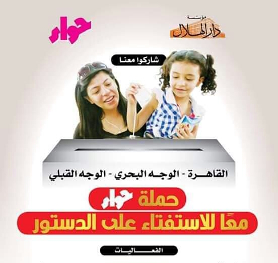 تعقد مجلة حواء الصالون الشهري لها تحت عنوان " معا للاستفتاء على الدستور"، وذلك يوم الاثنين ١٥ أبريل .