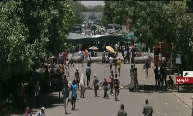 عرضت فضائية "إكسترا نيوز" لقطات حية لمحاولة الجيش السوداني إزالة المتاريس وفتح الطريق.