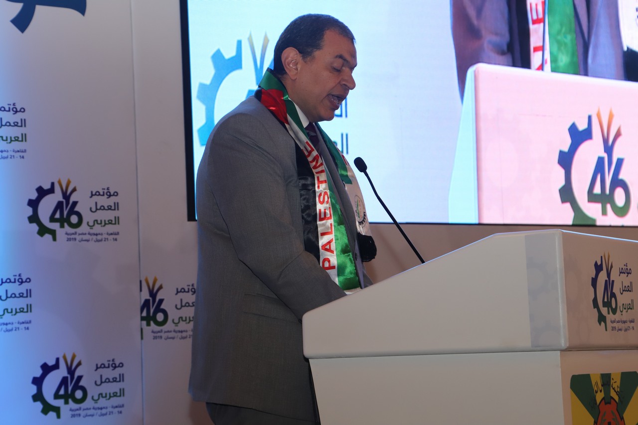 جاء ذلك في كلمته التي ألقاها مساء اليوم الأثنين، في الجلسة الخاصة بأوضاع عمال وشعب فلسطين في الأراضي المحتلة، التي اقيمت علي هامش انعقاد الدورة 46 لمؤتمر العمل العربية ، الذى ينعقد بالقاهرة ، ويستمر حتي 21 أبريل الجاري، تحت رعاية الرئيس عبد الفتاح السيسي، وبحضور نبيل شعث ممثلا عن للرئيس الفلسطيني محمود عباس أبو مازن، وكميل شاكر أبو سليمـان رَئِيـسُ المُؤتمر، ووزير العمل بدولة لبنان، ومريم العقيل رئيس مجلس إدارة منظمة العمل العربية، ووزير الدولة للشؤون الاقتصادية بدولة الكويت وفايز المطيري مُدير عام مُنَظَّمَة العَمَل العَرَبيَّة ورُؤسَاء وأعضَاء الوفُود العَرَبيَّة.