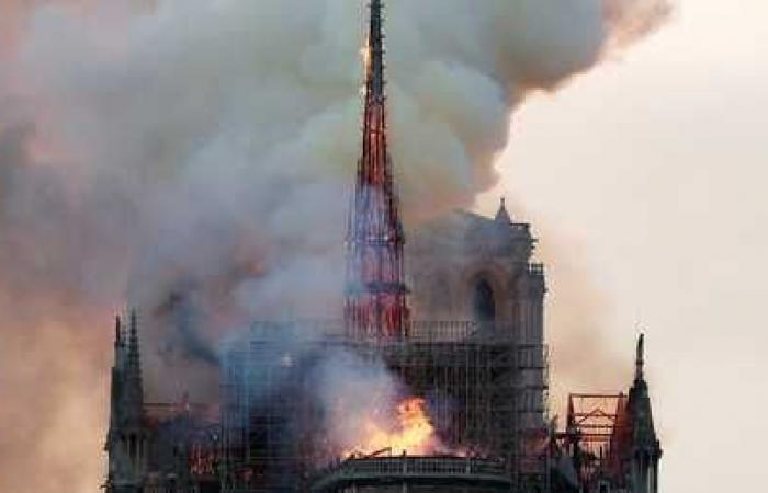 انهار برج كاتدرائية نوتردام التاريخية في العاصمة الفرنسية باريس، بعد اندلاع النيران بالكاتدرائية الشهيرة مما أدي إلى التهام البرج بالكامل.
