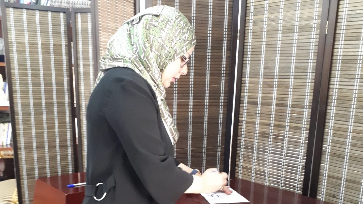حرصت الدكتورة ندى مجاهد نائب رئيس جامعة البحرين وإحدى نابغات مؤتمرات مصر تستطيع على الإدلاء بصوتها في الاستفتاء بالسفارة المصرية في المنامة.