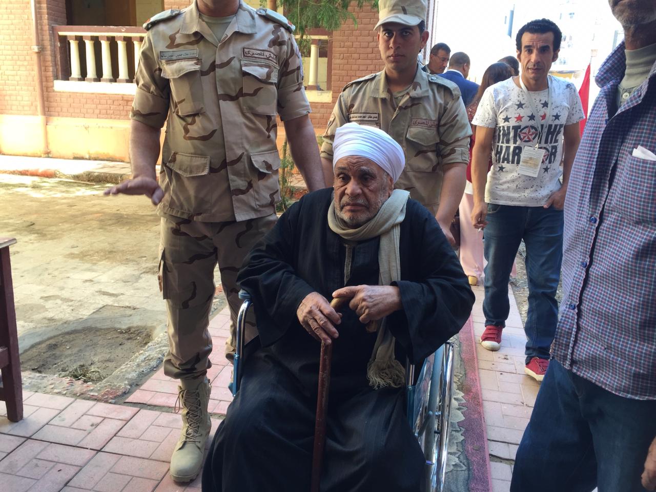 حرص رجال القوات المسلحة المكلفون بتأمين اللجان الانتخابية في الاستفتاء على الدستور بسوهاج بتوفير كراسي متحركة داخل اللجان لمساعدة كبار السن للإدلاء بأصواتهم.