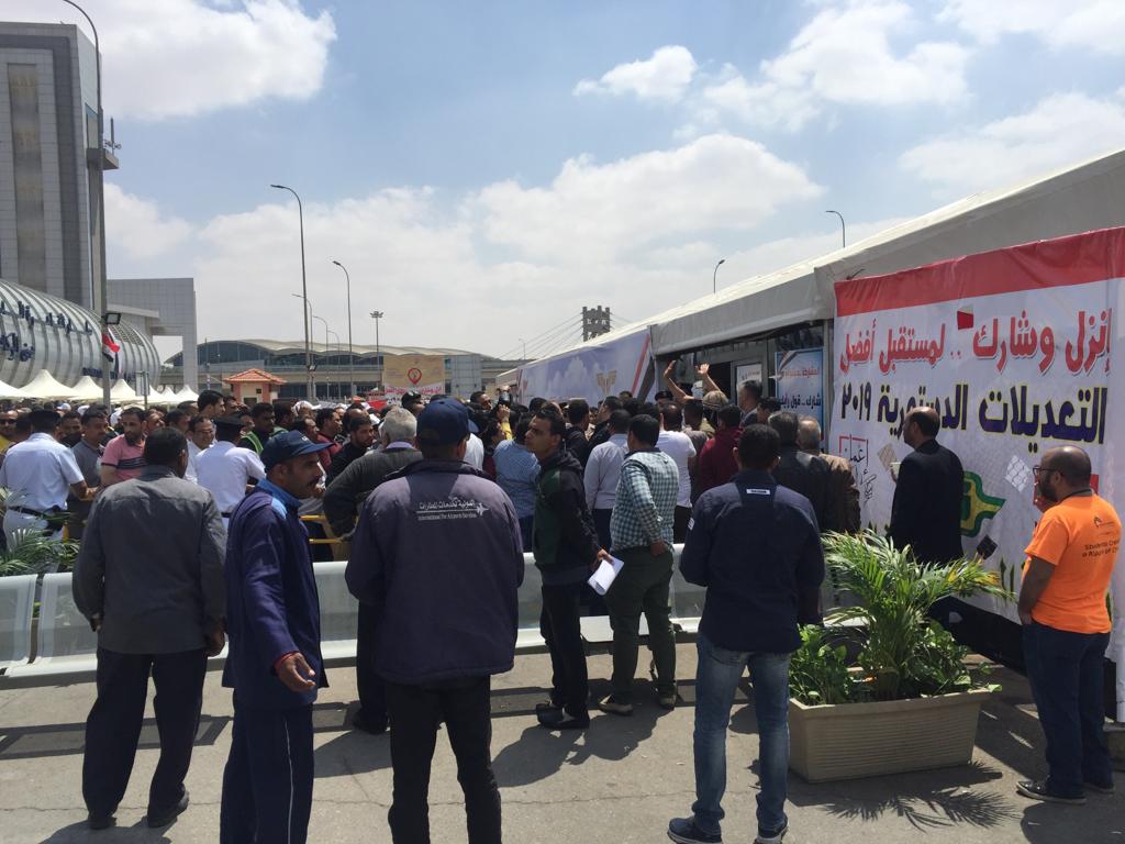 شهدت إحدى اللجان الانتخابية بمطار القاهرة الدولي، إقبالا كبيرا من المسافرين والعاملين بقطاع الطيران المدني من الشركات التابعة للوزارة، للإدلاء بأصواتهم في الاستفتاء على التعديلات الدستورية.
