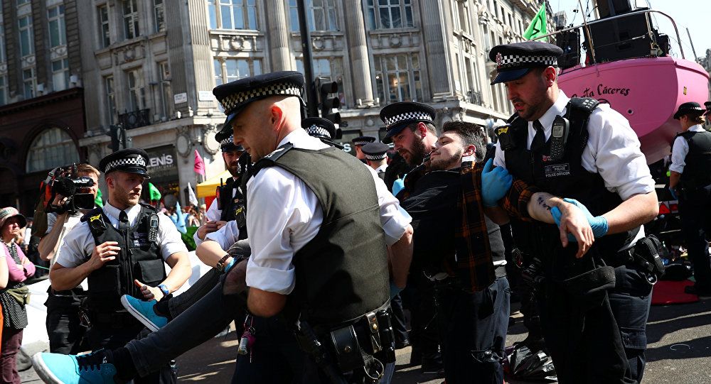 اعتقلت الشرطة البريطانية، نحو 700 ناشط بيئي خلال تظاهراتهم في العاصمة البريطانية لليوم السادس على التوالي.
