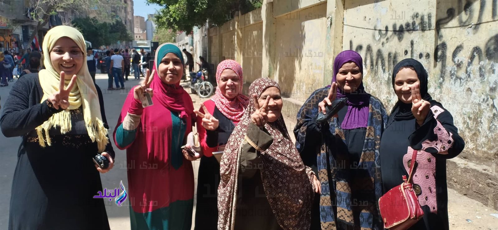 رفعت النساء الست علامة النصر قائلات لصدى البلد: " جايين ننتخب السيسي وتحيا مصر'".