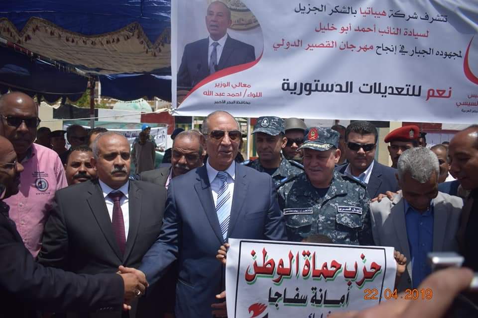 محافظ البحر الأحمر يتقدم مسيرة مؤيدة للتعديلات الدستورية بمدينة سفاجا