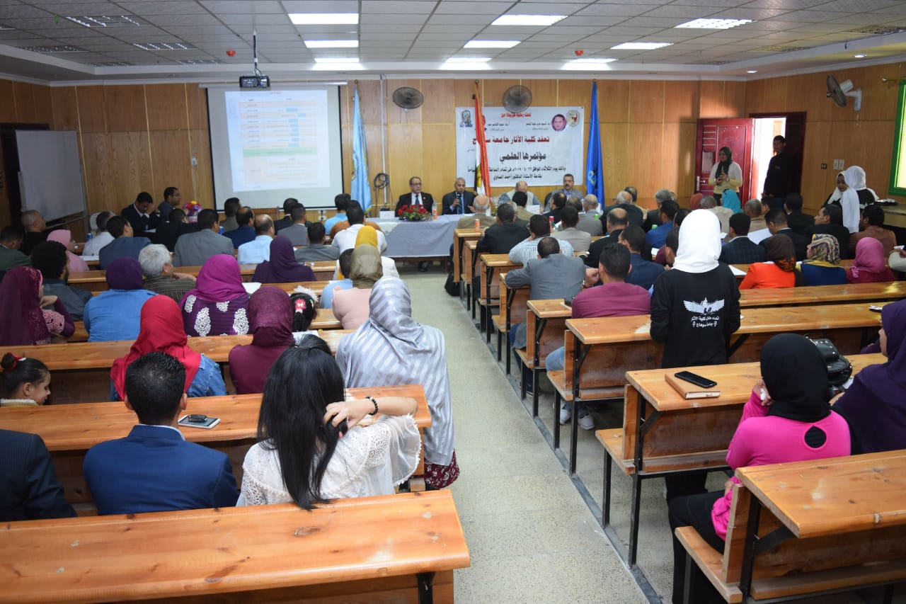 مختتما حديثه بتوجيه شكر للدكتور أحمد عزيز رئيس الجامعة لرعايته للمؤتمر ودعمه الكامل لكل الأنشطة والفعاليات العلمية المقامة بالكلية، وتوفير كافة التجهيزات العلمية والبحثية والإدارية.