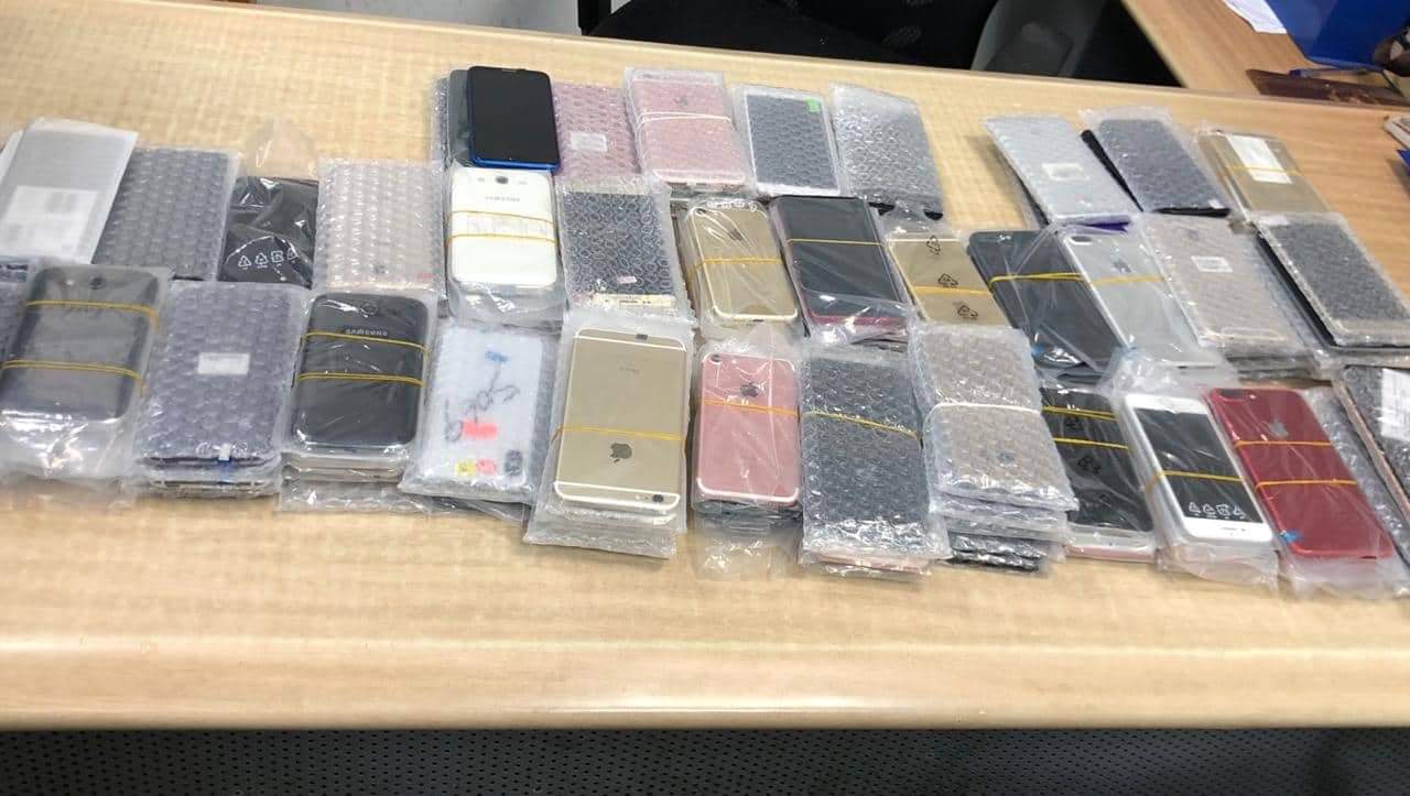 وبتفتيش أمتعة الراكب تم العثور على 73 هاتف محمول ماركة آيفون و 47 ماركة سامسونج و 7 ماركة ال جى و 5 ماركة أوبو و 2 ماركة لينوفو و 6 ماركة هاواوى بإجمالى 140 هاتفا محمولا مخفاة بين طيات الملابس داخل حقائبه، وبلغت قيمة المضبوطات 620 ألف جنيه.