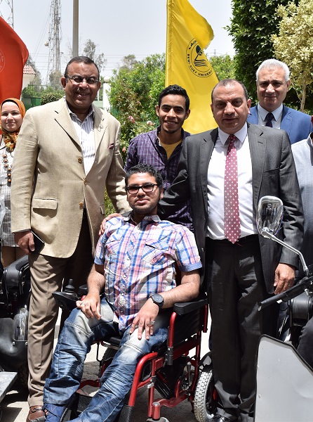 سلّم الدكتور منصور حسن رئيس جامعة بني سويف، 4 دراجات بخارية وكرسي كهربائي متحرك للطلاب ذوي الإعاقة بكليات التجارة والآداب، في إطار الجهود المتواصلة للجامعة في رعاية ودعم المعاقين وتقديم كافة الخدمات التأهيلية لهم باعتبارهم أصحاب طاقات يجب توظيفها لخدمة المجتمع، وذلك بحضور الدكتور محمد خضر، نائب رئيس الجامعة لشئون التعليم والطلاب، ومدحت مهدوي، أمين عام الجامعة، وكابتن محمد فاروق، مدير عام إدارة رعاية الشباب، ومسئول إدارة التكافل، وأولياء أمور الطلاب.
