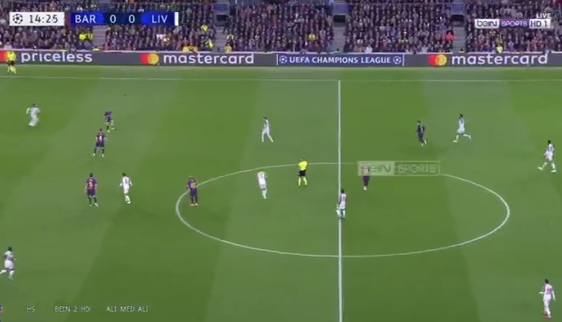 بدأ المباراة ليفربول بالزي الأبيض البديل على اليمين وبرشلونة بالزي الأحمر والأزرق على اليسار، البداية مع الضيوف وتمريرات متبادلة في منتصف الميدان