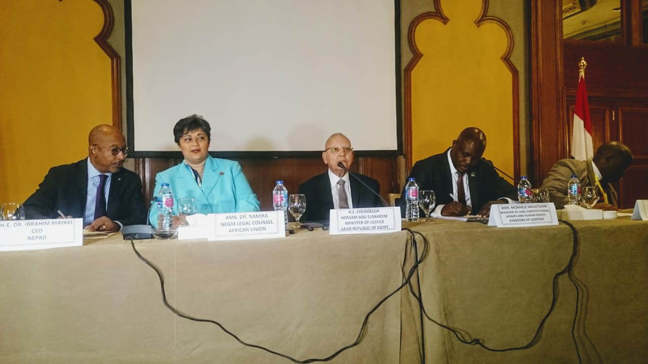 حضر جلسة الافتتاح ، موخيلا مولتسان وزير عدل مملكة ليسوتو رئيس الإجتماع وبعض وزراء العدل الأفارقة، ود.ابراهيم ماياكي المدير التنفيذى للوكالة الافريقية للتنمية نيباد ، والسفيرة نميرة نجم المستشار القانونى للاتحاد الافريقي بالإضافة إلى العديد من ممثلى الدول الافريقية الأعضاء .