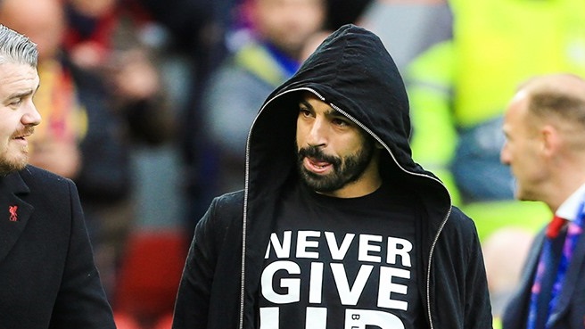 ودخل صلاح إلى الملعب بتيشيرت مكتوب عليه: لا تستسلم أبدًا
