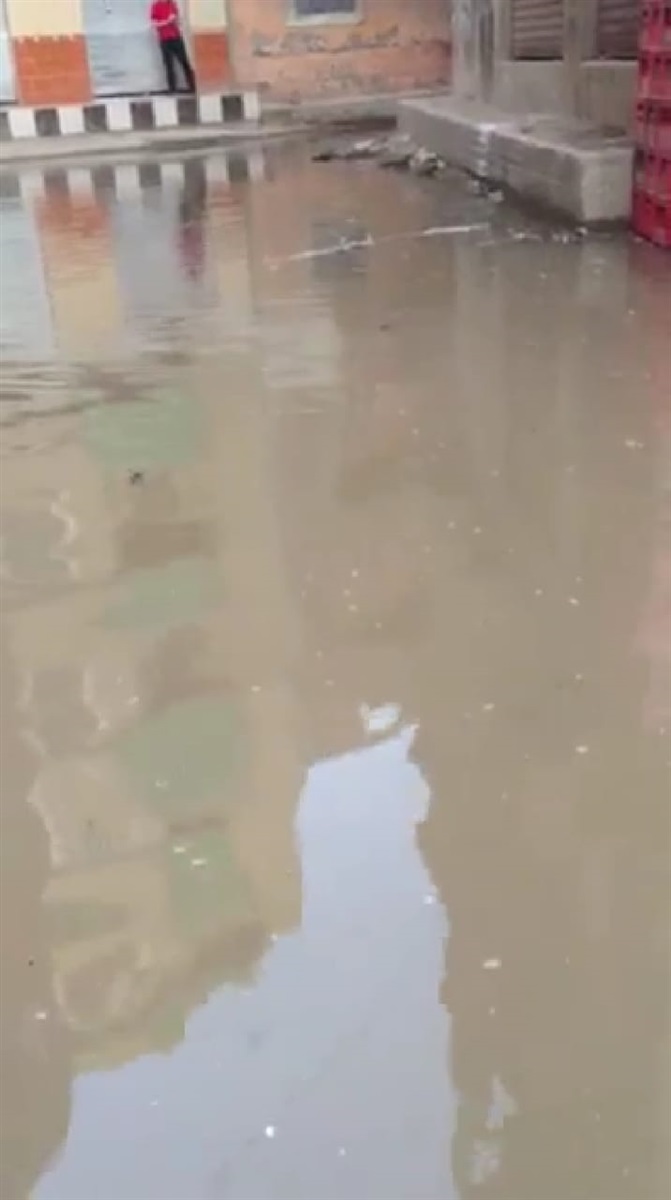 شوارع منية شبين تغرق بسبب انفجار ماسورة مياه