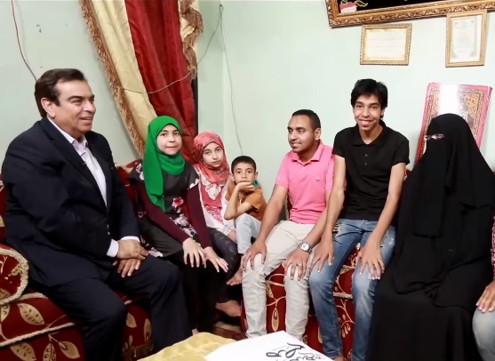 وفازت الحاجة ناهد القناوي من كفر شوبك بمحافظة القليوبية، بالجائزة أيضًا، وهي أرملة وأم لـ9 أبناء، حيث جلس "قرداحي"، وسط الأبناء التسعة والأم وتحدث معهم عن أحوالهم وأمنياتهم، وسط احتفاء كبير به من الأسرة وأهالي المنطقة.