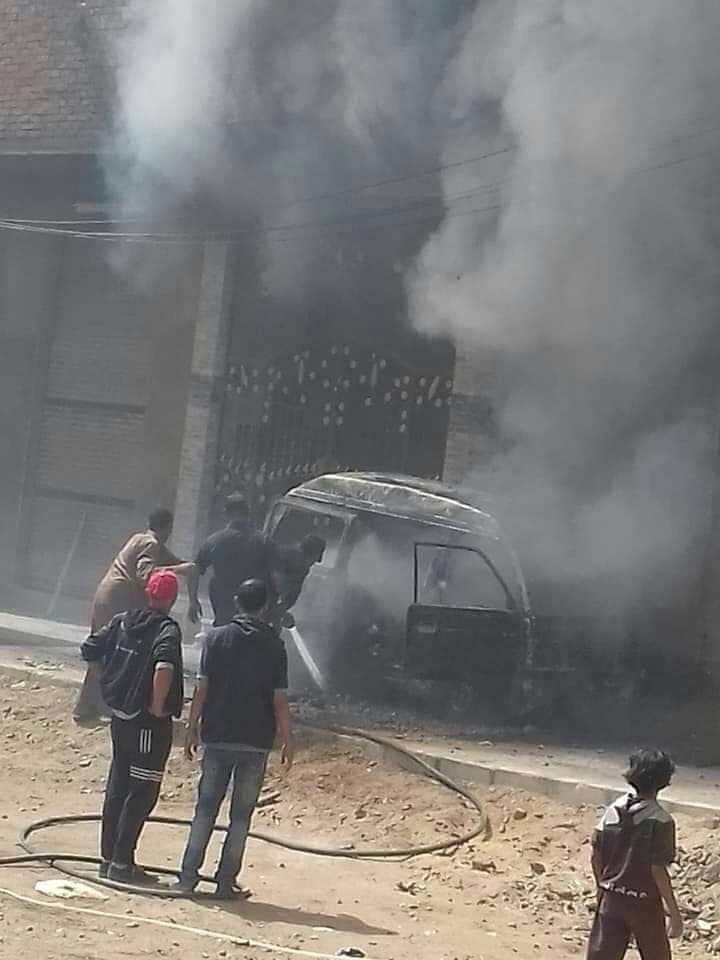 وتبين من المعاينة اندلاع النيران في سيارة سوزوكي أجرة بجوار نقطة شرطة كفر الجزار واشتعال ماسورة الغاز الطبيعي، وتمت السيطرة على الحريق دون أي خسائر في الأرواح.