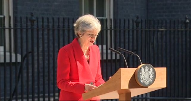 في مشهد مؤثر، أعلنت رئيسة الوزراء البريطانية تيريزا ماي، أثناء إلقائها خطاب استقالتها من رئاسة الحكومة البريطانية، اليوم الجمعة، محددة 7 من يونيو موعدا لمغادرة منصبها في الحكومة وحزب المحافظين الحاكم على خلفية أزمة «بريكست».