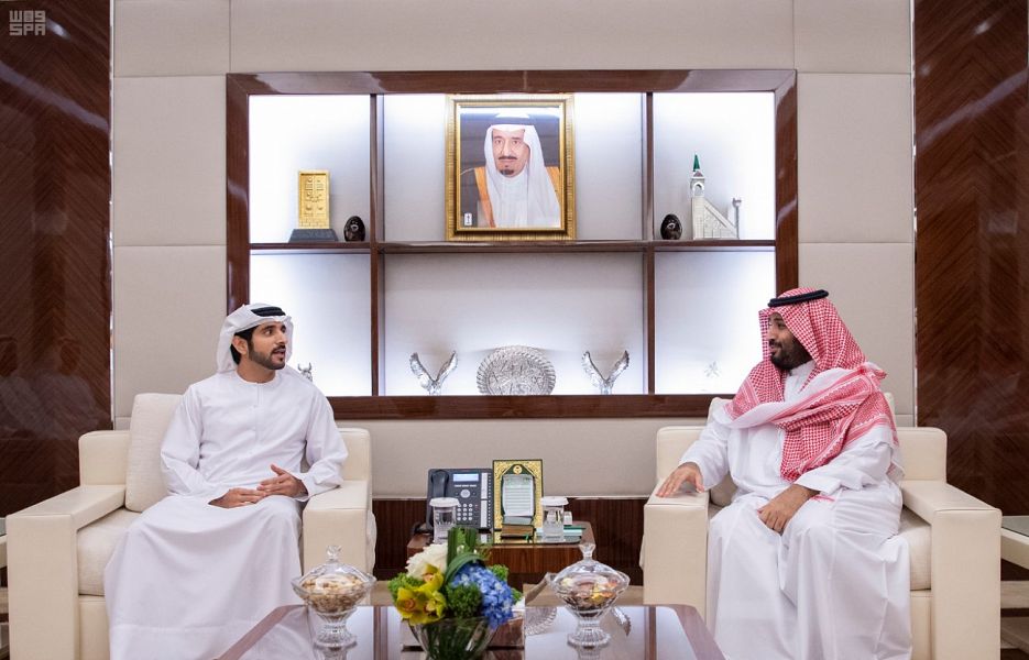 وبحسب وكالة الأنباء السعودية "واس"، نقل الشيخ حمدان لولي العهد السعودي تحيات وتقدير الشيخ خليفة بن زايد آل نهيان رئيس دولة الإمارات والشيخ محمد بن راشد آل مكتوم نائب رئيس دولة الإمارات رئيس مجلس الوزراء حاكم دبي، فيما حمله بن سلمان تحياته وتقديره لهما.