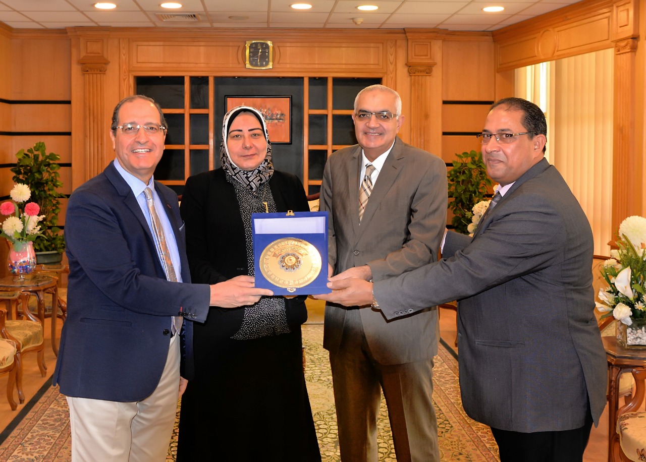 رئيس جامعة المنصورة يكرم عميدة كلية التربية ومدير مركز ضمان الجودة