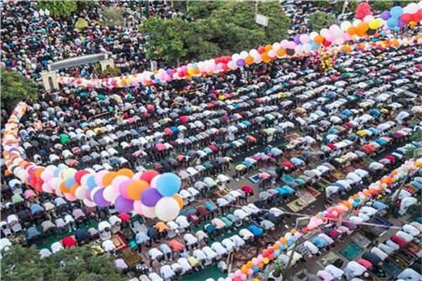احتفل آلاف من المسليمن فى العالم العربى بعيد الفطر المبارك وسط أجواء من السعادة والفرحة والبهجة احتفالا بالعيد بالمساجد وخارجها بالساحات المتعددة والتى تبلغ 508 ساحة وارتدى الأطفال الملابس الجديدة حاملين البالونات معربين عن فرحتهم بالعيد وحظى مسجد النصر بالمنصورة بإقبال كبير من المواطنين كما قام عدد منهم بتلوين وجوههم برسومات رائعة.
