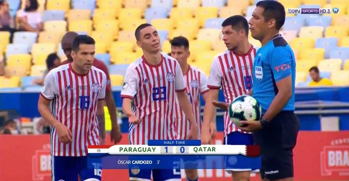 أنهى منتخب باراجواي، الشوط الأول متقدمًا على نظيره قطر بهدف دون رد، فى المباراة التى تجمع الفريقين حاليًا على ملعب "ماراكانا" الشهير، ضمن منافسات الجولة الأولى بالمجموعة الثانية في بطولة كوبا أمريكا.