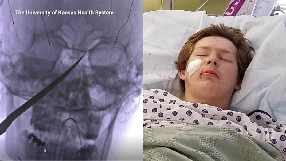 نشر موقع فوكس نيوز مجموعة من الصور الصادمة تظهر اختراق سكين بطول 23 سنتينترًا لجمجمة المراهق، كانت قد التقطت له بمستشفى ولاية كنساس الأمريكية.