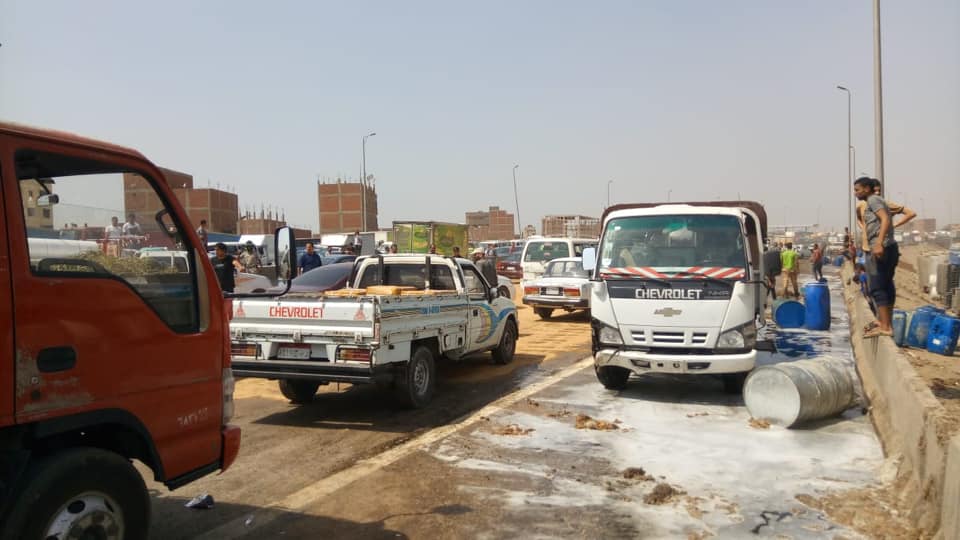 تلقت غرفة عمليات المرور تلقت إخطارا من المتابعة الميدانية بشأن وقوع حادث مروري أعلى الطريق الدائري وانقلاب سيارة نقل فنطاس محملة بالصابون السائل بمنطقة بهتيم باتجاه مسطرد ما أدى إلى سقوط الحمولة على الأرض.