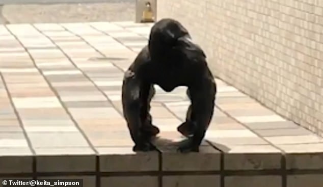 تظهر لقطات تم تصويرها في ناجويا ، اليابان ، الطائر غريب المظهر وهو يحرك رأسه، بينما يضع أجنحته على الأرض في خطوات تشبه الغوريلا.