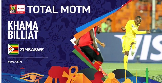 أعلن الاتحاد الأفريقي لكرة القدم اختيار خاما بيليات لاعب منتخب زيمبابوي كأفضل لاعب في مباراة منتخب بلاده أمام نظيره منتخب أوغندا ، ضمن منافسات الجولة الثانية من المجموعة الأولى بكأس الأمم الأفريقية 2019 بمصر.