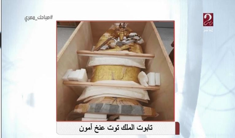وتابع أنه تم عملية نقل التابوت الخشبي المدهب للملك توت عنخ أمون الذي كان في مقبرته في وادي الملوك إلى المتحف المصري الكبير .