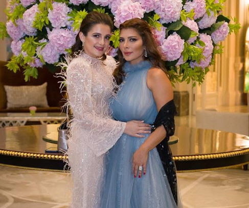 وظهرت أصالة برفقة ابنتها شام بإطلالة الأميرات، حيث ارتدت فستانا طويلا باللون الأزرق، وتركت شعرها منسدل على أكتافها، واكتفت بوضع مكياج بسيط أبرز ملامحها.