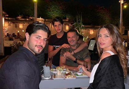 وظهر راغب علامة فى الصورة برفقة زوجته وأبنائه فى إحدى سهرات العشاء ببيرت.
