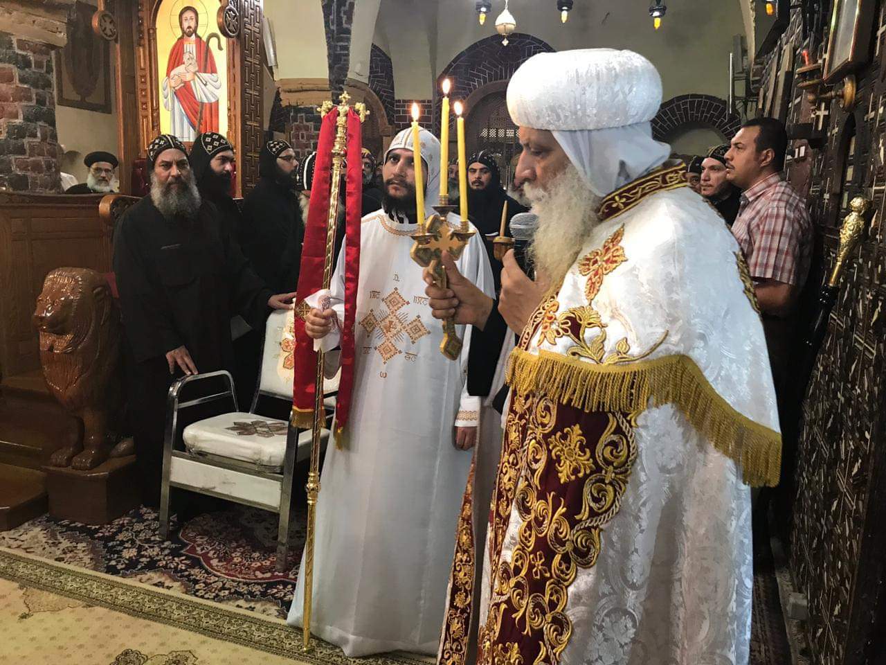 ووصل الأب الأسقف الجديد إلى الدير بصحبة نيافة الأنبا مرقوريوس أسقف جرجا والمشرف السابق على الدير ذاته، وتوجه مباشرة إلى كنيسة الدير لبدء صلوات العشية التي تتضمن طقس التجليس.