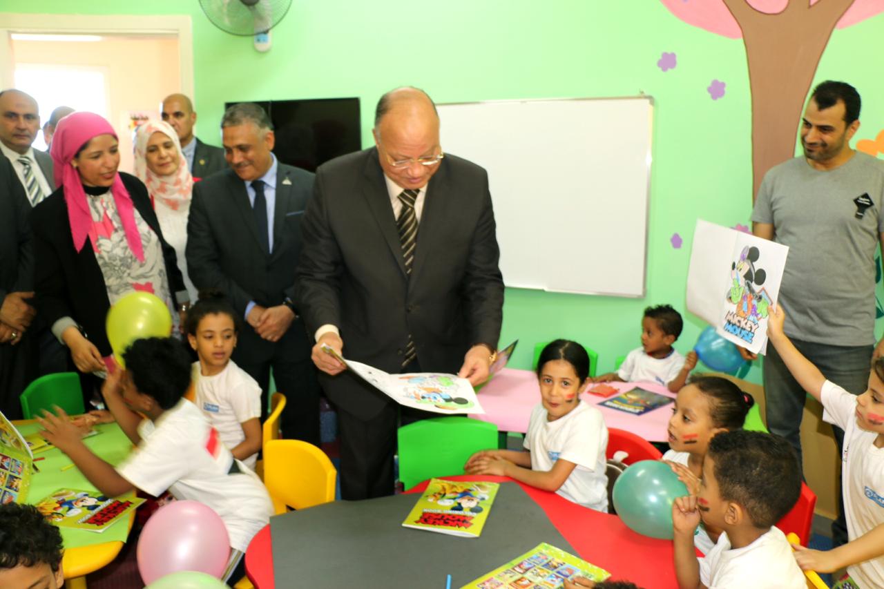 ثم قام محافظ القاهرة بتفقد حضانة المحروسة التى أقامتها مديرية التضامن بالقاهرة لخدمة أهالى المنطقة فى اطار حرص المحافظة على توفير كافة الخدمات للمواطنين المقيمين بالمحروسة .