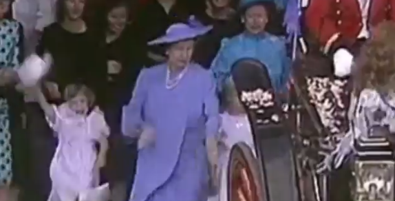 ظهرت إليزابيث الثانية وهى تحاول اللحاق بحفيدها الذى كان يبلغ من العمر 4 أعوام أثناء الحفل فى عام 1986، بالتزامن مع اقتراب ذكرى زواج أندرو وسارة.