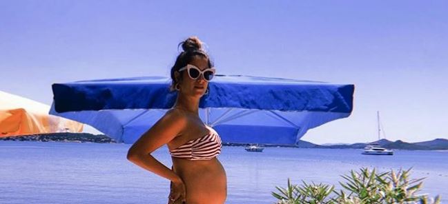 وظهرت هازل كايا، وهي ترتدي مايوه بكيني على البحر، برعم حملها في الشهر الخامس الذي كشفت عنه في تعليقها على الصورة.