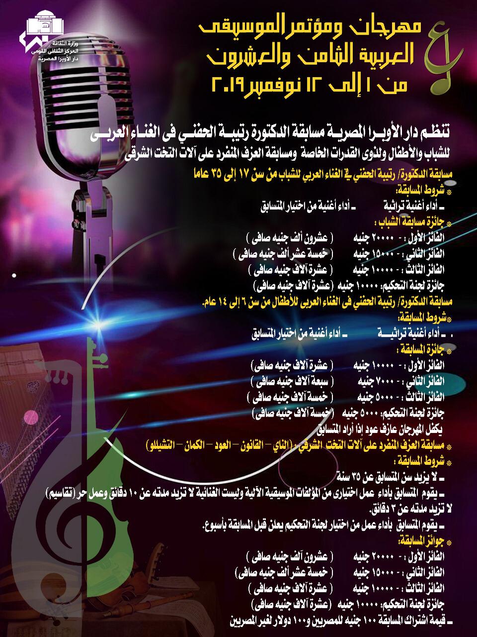 الأوبرا تعلن شروط مسابقة مهرجان الموسيقى العربية الـ 28