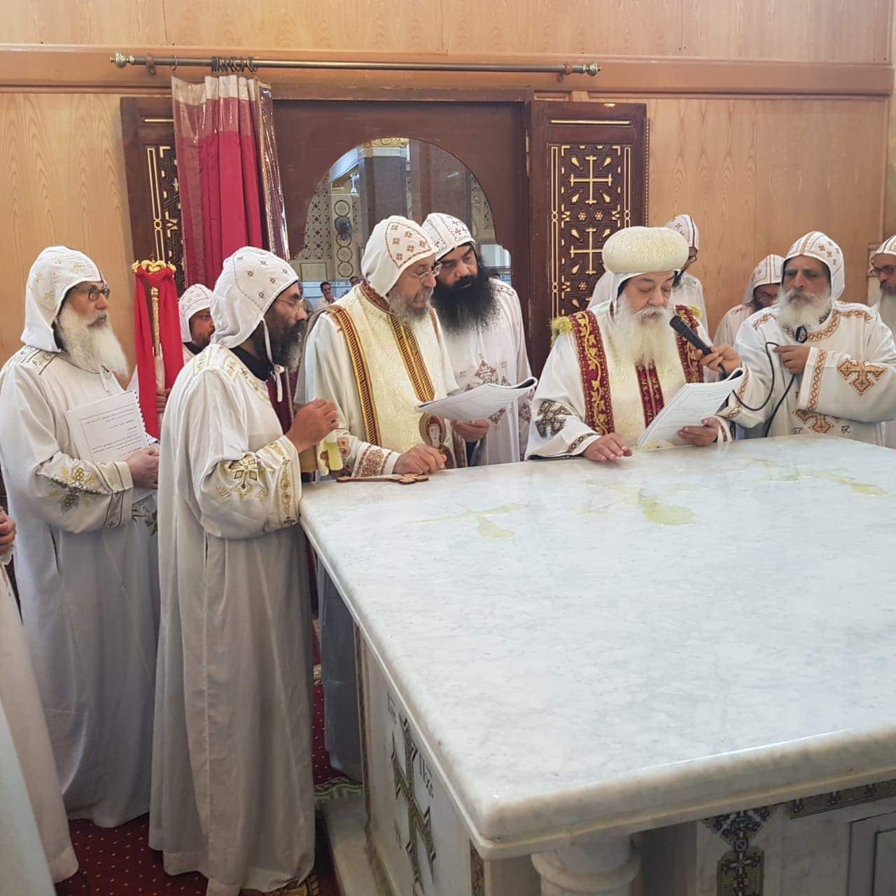 ترأس الأنبا هدرا مطران ايبارشية أسوان للأقباط الأرثوذكس، صلوات تدشين، مذابح كنيسة السيدة العذراء بدير القديس الأنبا باخوميوس بحاجر ادفو.