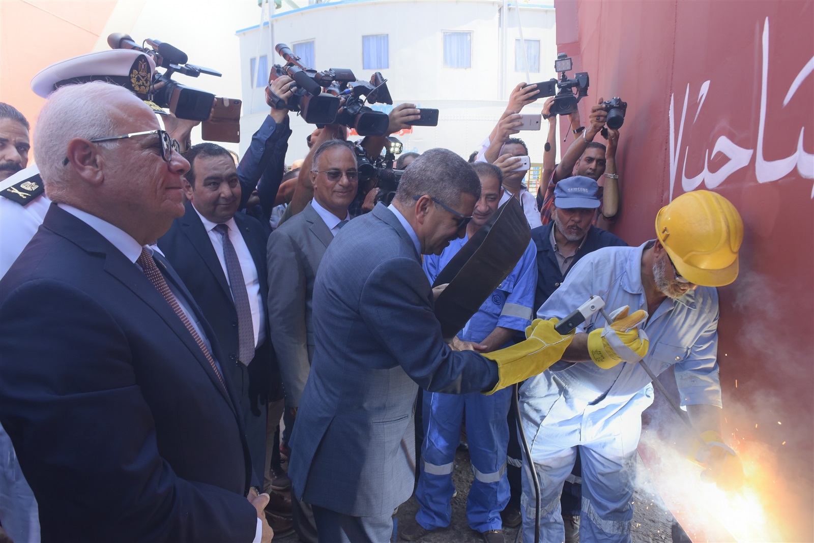 كان في استقبالهم منذ الصباح الباكر بمقر الترسانة البحرية ببورسعيد، المهندس عادل فريد الطنطاوي مدير إدارة الترسانات وعدد من القيادات والعاملين بالترسانة، وفور وصولهم توجه الفريق أسامة ربيع واللواء عادل الغضبان وكبار المدعوين لتشغيل ماكينة التقطيع الأوتوماتيكية CNC بقسم بناء السفن.