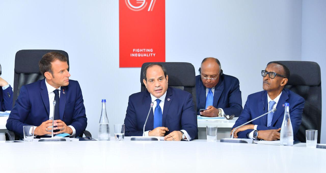 وكان الرئيس عبد الفتاح السيسي الرئيس الحالي للاتحاد الافريقي، شارك في وقت سابق اليوم جلسة عمل حول "الشراكة بين مجموعة ال٧ وأفريقيا"، بحضور الرئيس الفرنسي ايمانويل ماكرون وقادة دول مجموعة ال٧ ورؤساء جنوب افريقيا والسنغال ورواندا وبوركينا فاسو.