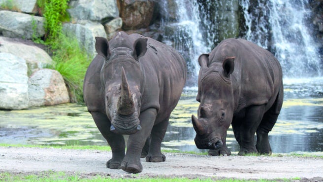 شاهد.. وحيد قرن عملاق يهاجم امرأة ويقلب سيارتها